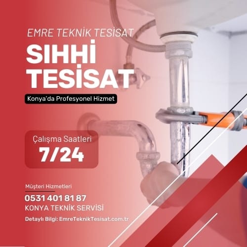 Emre Teknik Tesisat, Konya’da uzun yıllardır sıhhi tesisat alanında kaliteli hizmet sunmaktadır. Firmamız, profesyonel ekipleri ve tecrübeli kadrosuyla her türlü sıhhi tesisat sorununu çözmek için yanınızdadır. Su kaçağı tespiti, kombi bakımı, pimaş temizliği gibi konularda güvenilir ve hızlı çözümler sunarak müşterilerimizin memnuniyetini sağlamaktayız. Emre Teknik Tesisat olarak en son teknolojiye sahip ekipmanlar kullanarak işlerimizi titizlikle yerine getirmekteyiz. Siz de sıhhi tesisat ihtiyaçlarınızda bize başvurabilir, profesyonel hizmetimizin farkını yaşayabilirsiniz.
